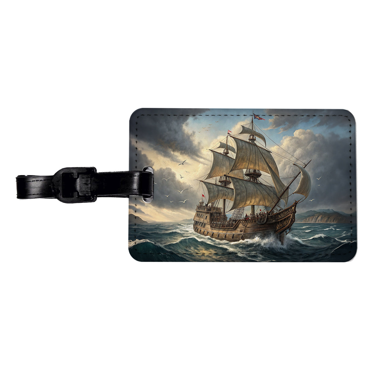 18th Century Privateer Sailing Ship At Sea Age of Sail Travel Faux Leather Luggage Tag