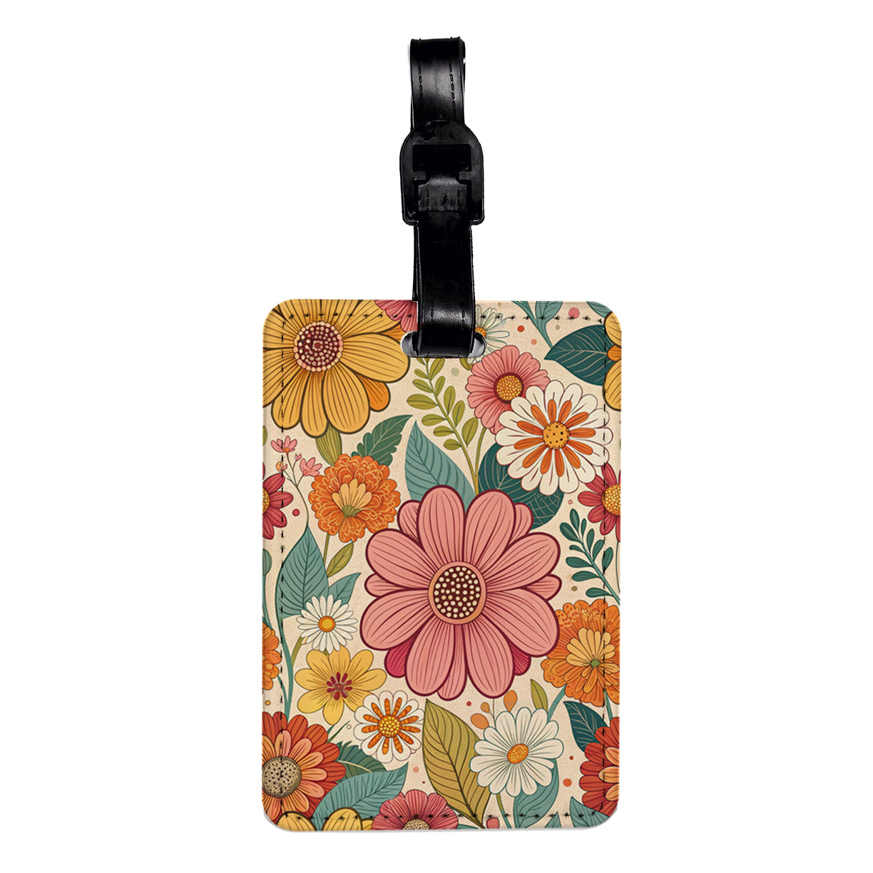 60s Sixties Groovy Flowers Floral Travel Faux Leather Luggage Tag