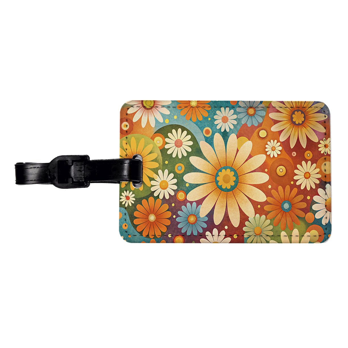 70's Retro Groovy Hippie Daisies Floral Design Travel Faux Leather Luggage Tag