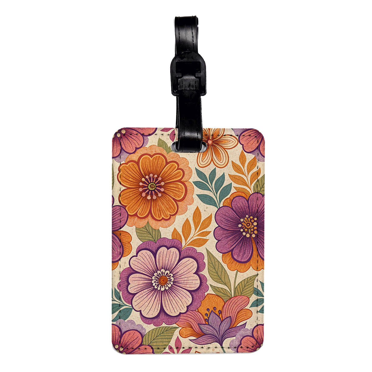 70s Seventies Flowers Floral Travel Faux Leather Luggage Tag