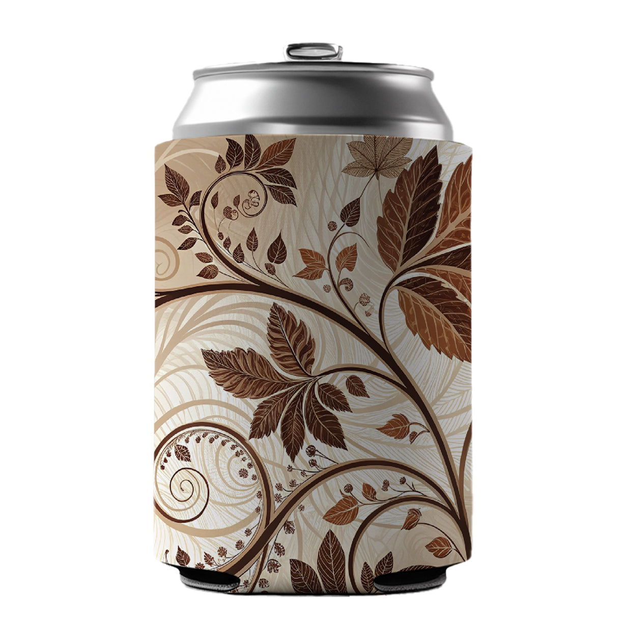 Abstract Brown Leaves Design Can Cooler Beer Soda Drink Insulated Holder Sleeve Hugger