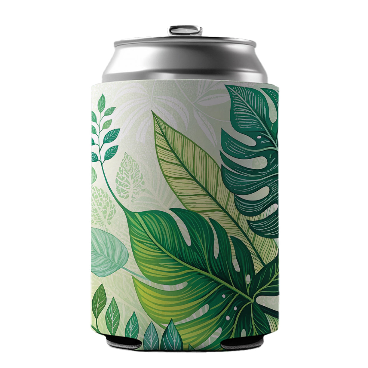 Abstract Green Leaves Design Can Cooler Beer Soda Drink Insulated Holder Sleeve Hugger