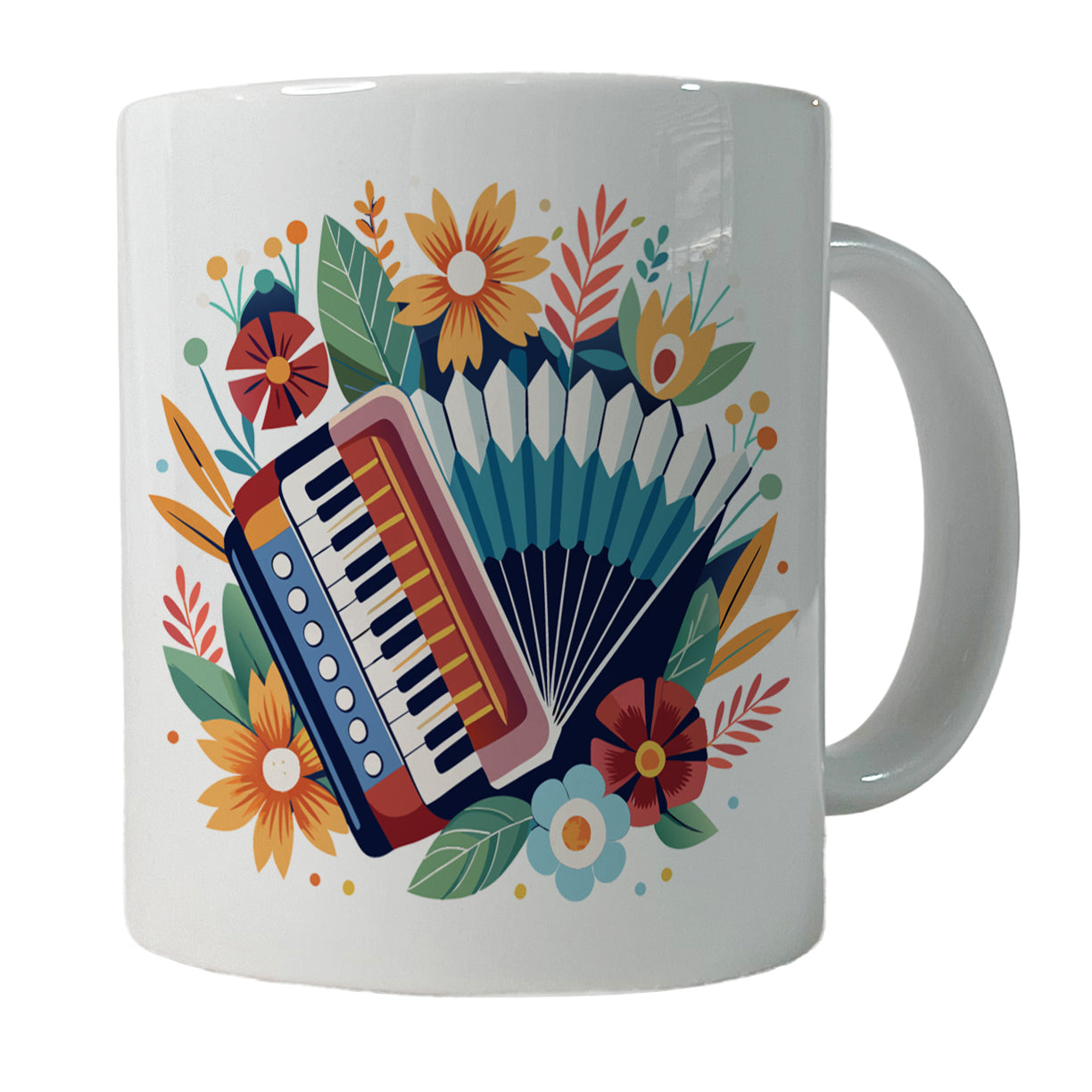 Accordion Music Floral Motif Ceramic Tea Coffee Mug Cup - 11oz