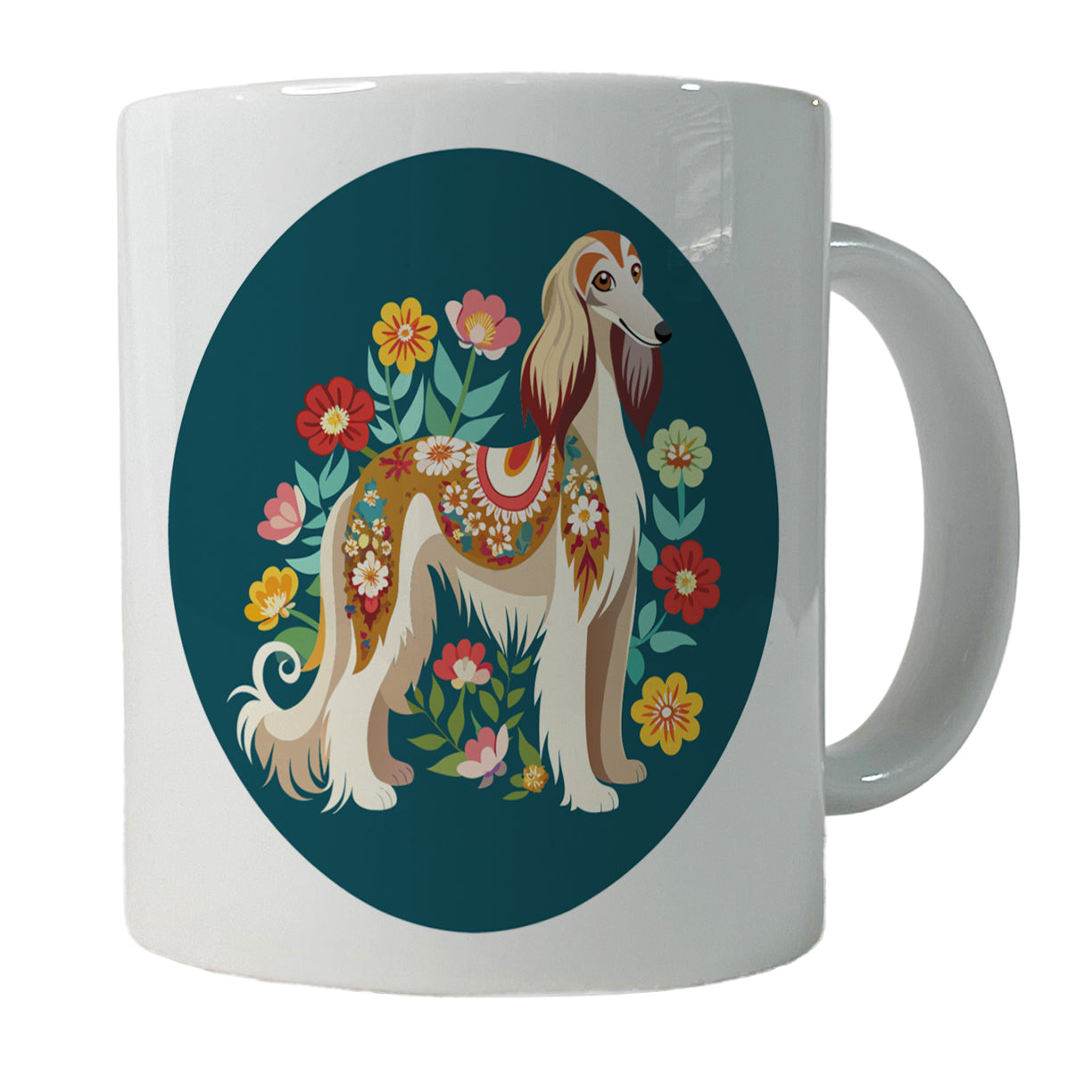 Afghan Hound Dog Floral Flowers Ceramic Tea Coffee Mug Cup - 11oz