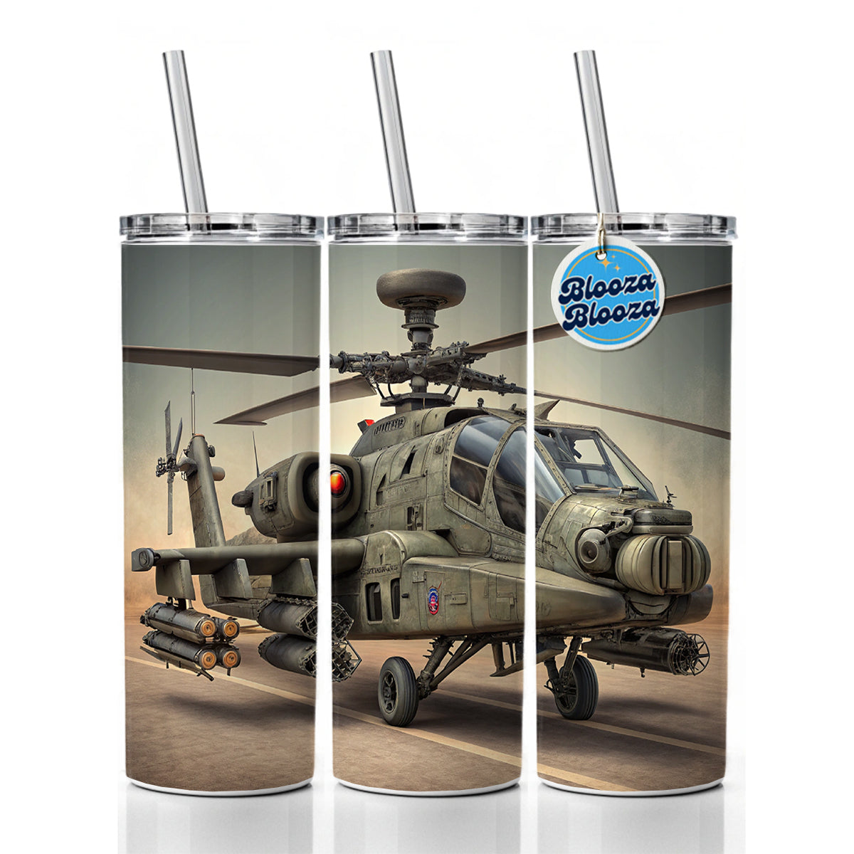 AH-64 Apache US Army Attack Helicopter Skinny Tumbler 20oz with Straw Insulated Water Bottle Gift