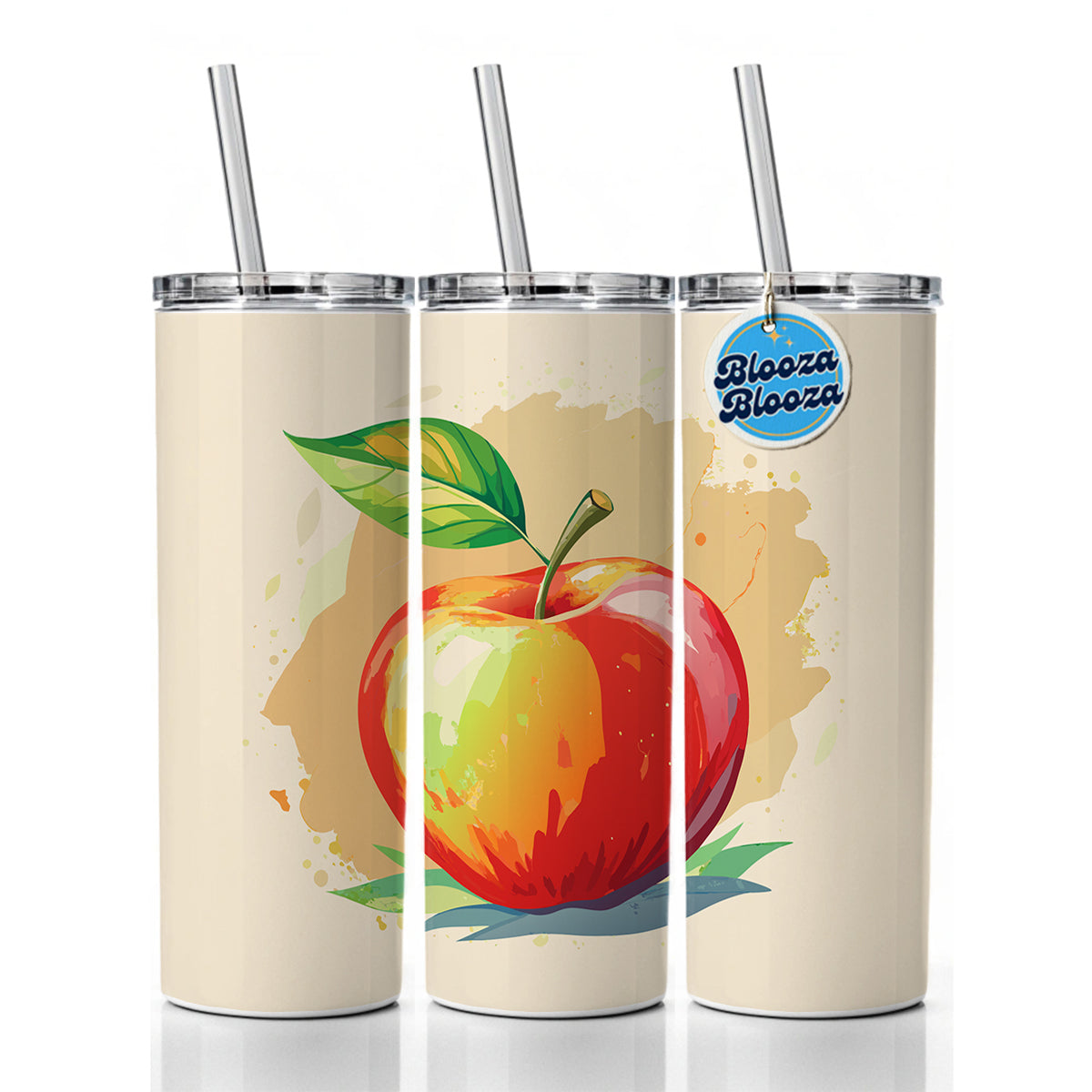 Apple Watercolor Teacher Skinny Tumbler 20oz with Straw Insulated Water Bottle Gift