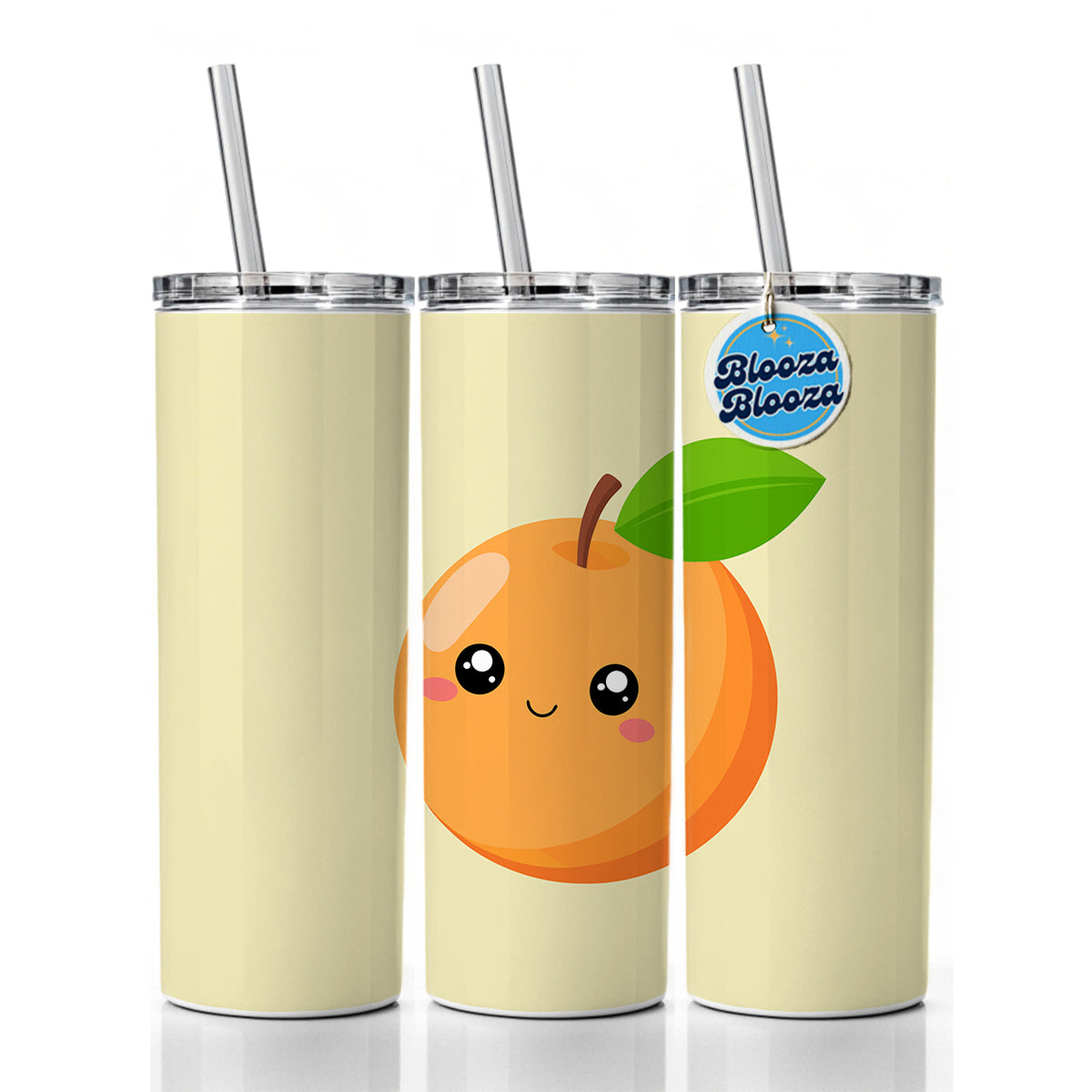 Apricot Cute Happy Fruit Skinny Tumbler 20oz with Straw Insulated Water Bottle Gift