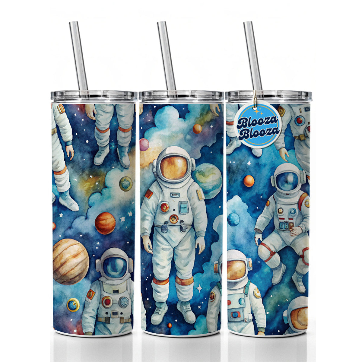 Astronauts In Space Watercolor Skinny Tumbler 20oz with Straw Insulated Water Bottle Gift