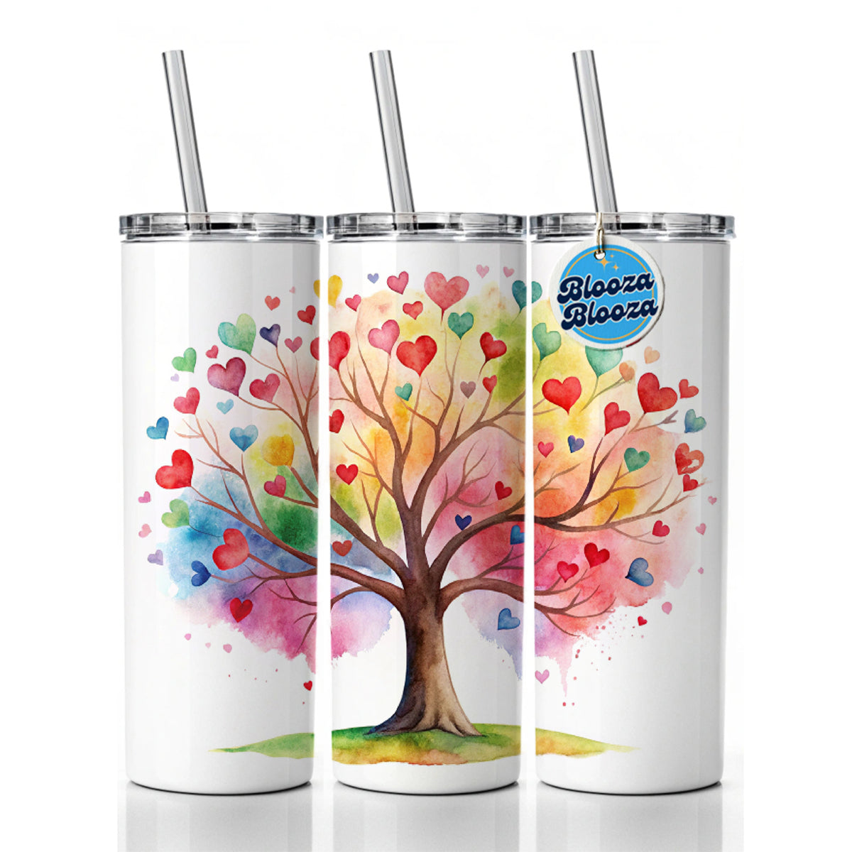 Autism Awareness Acceptance Tree With Hearts Watercolor Skinny Tumbler 20oz with Straw Insulated Water Bottle Gift