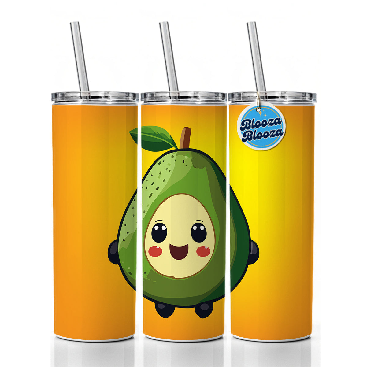 Avocado Smiling Funny Skinny Tumbler 20oz with Straw Insulated Water Bottle Gift
