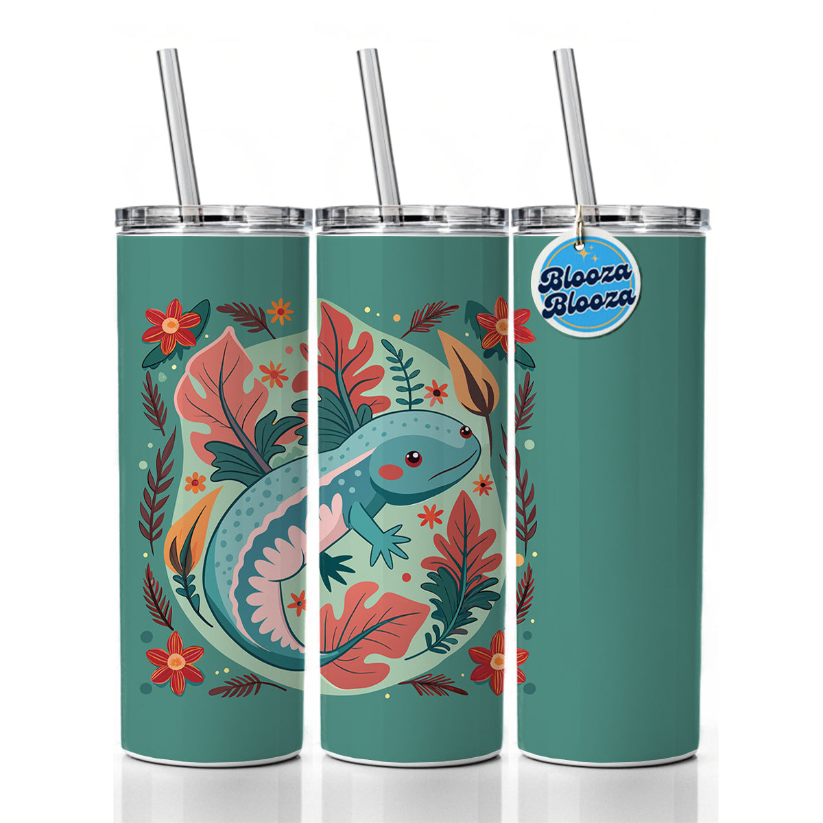 Axolotl Floral Motif Skinny Tumbler 20oz with Straw Insulated Water Bottle Gift