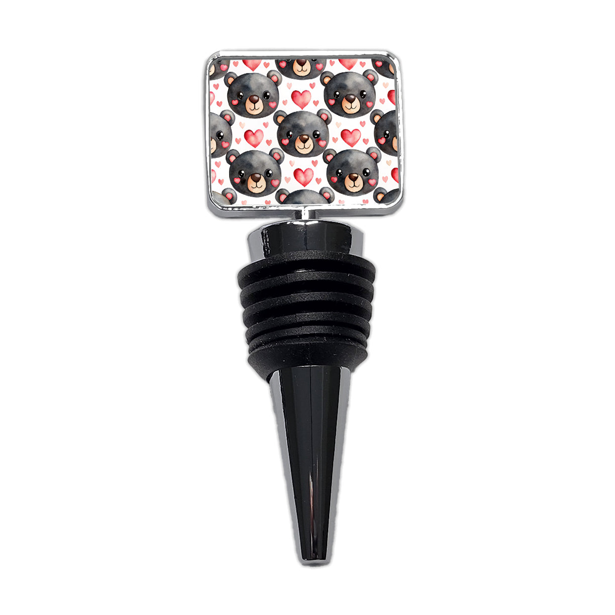 Cute Black Bear Faces Hearts Wine Bottle Stopper