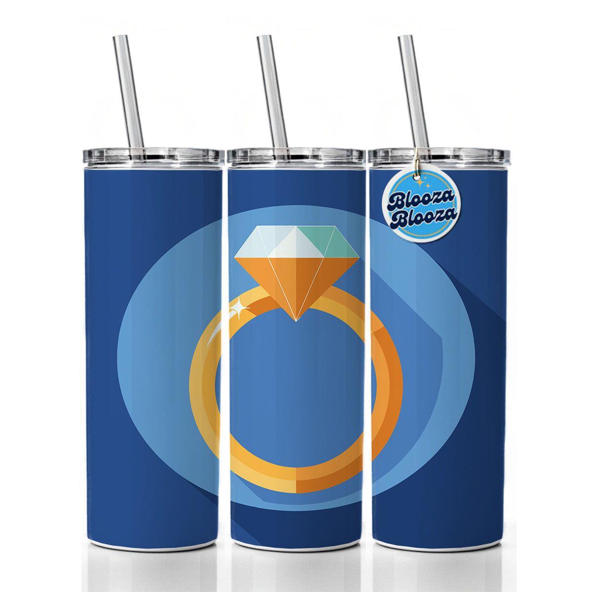 Diamond Ring Wedding Marriage Engagement Skinny Tumbler 20oz with Straw Insulated Water Bottle Gift