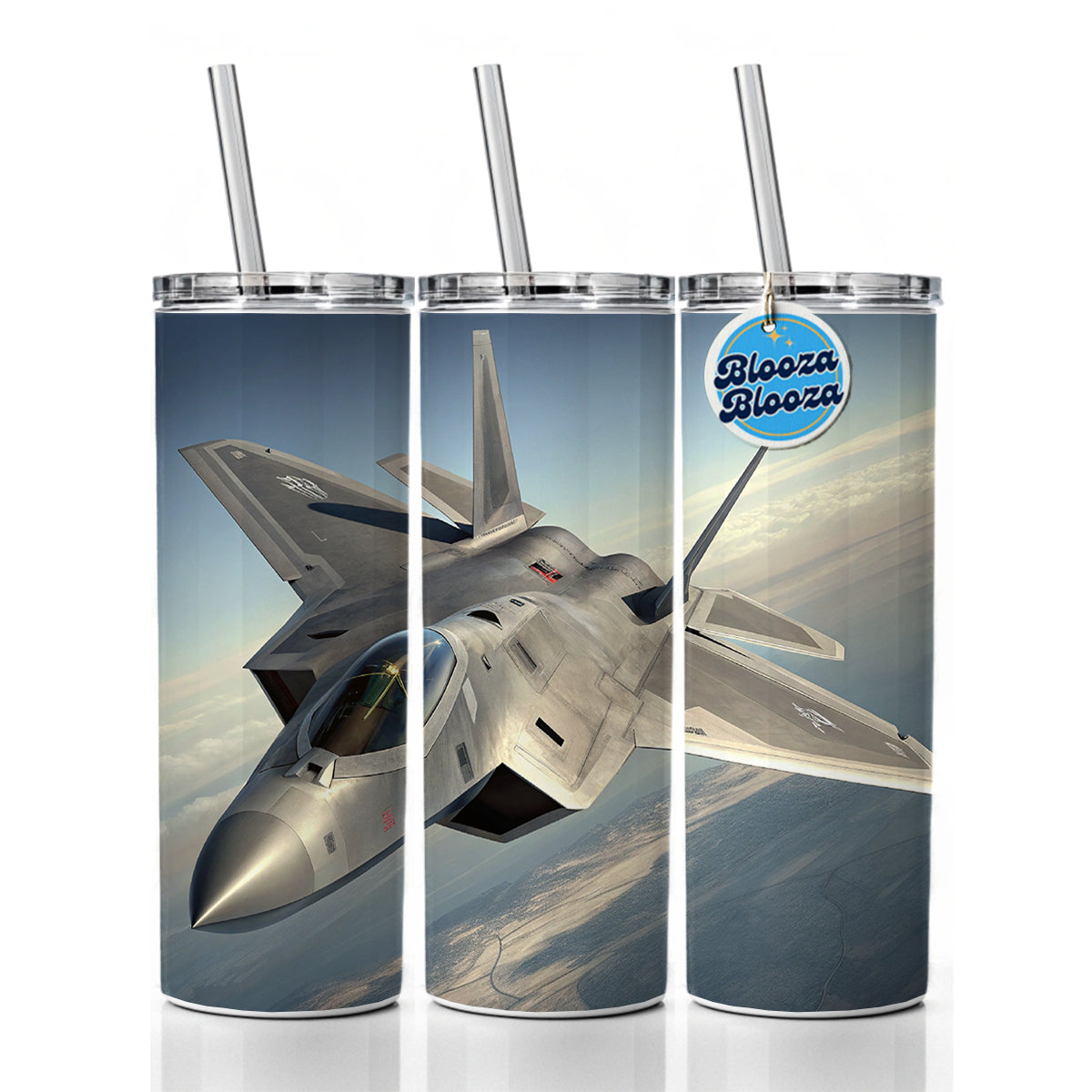 F-22 Raptor US Air Force Air Superiority Fighter Plane Skinny Tumbler 20oz with Straw Insulated Water Bottle Gift