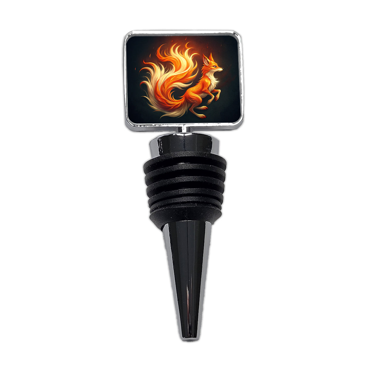 Flaming Fox Fire Kitsune Wine Bottle Stopper