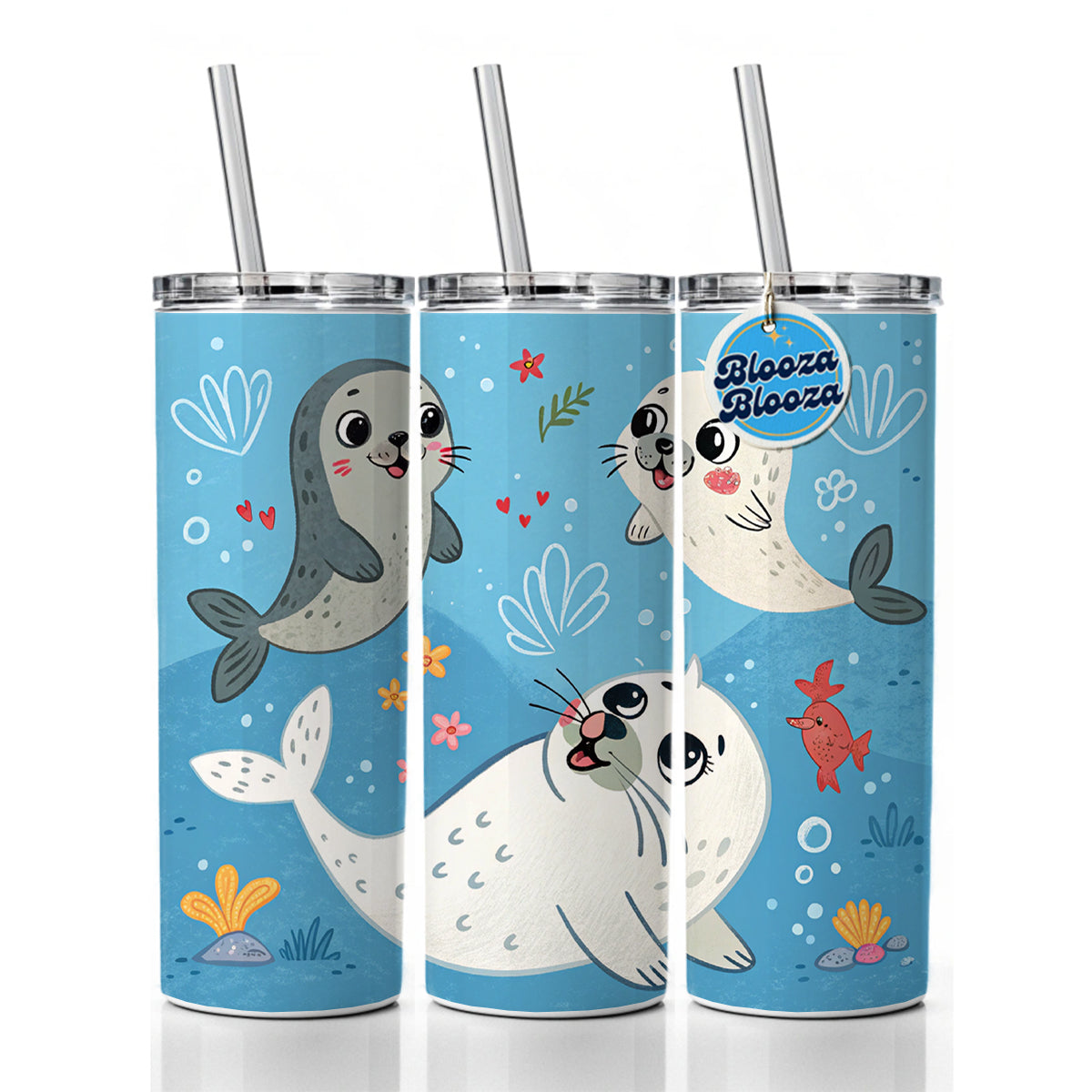Kawaii Seals Skinny Tumbler 20oz with Straw Insulated Water Bottle Gift