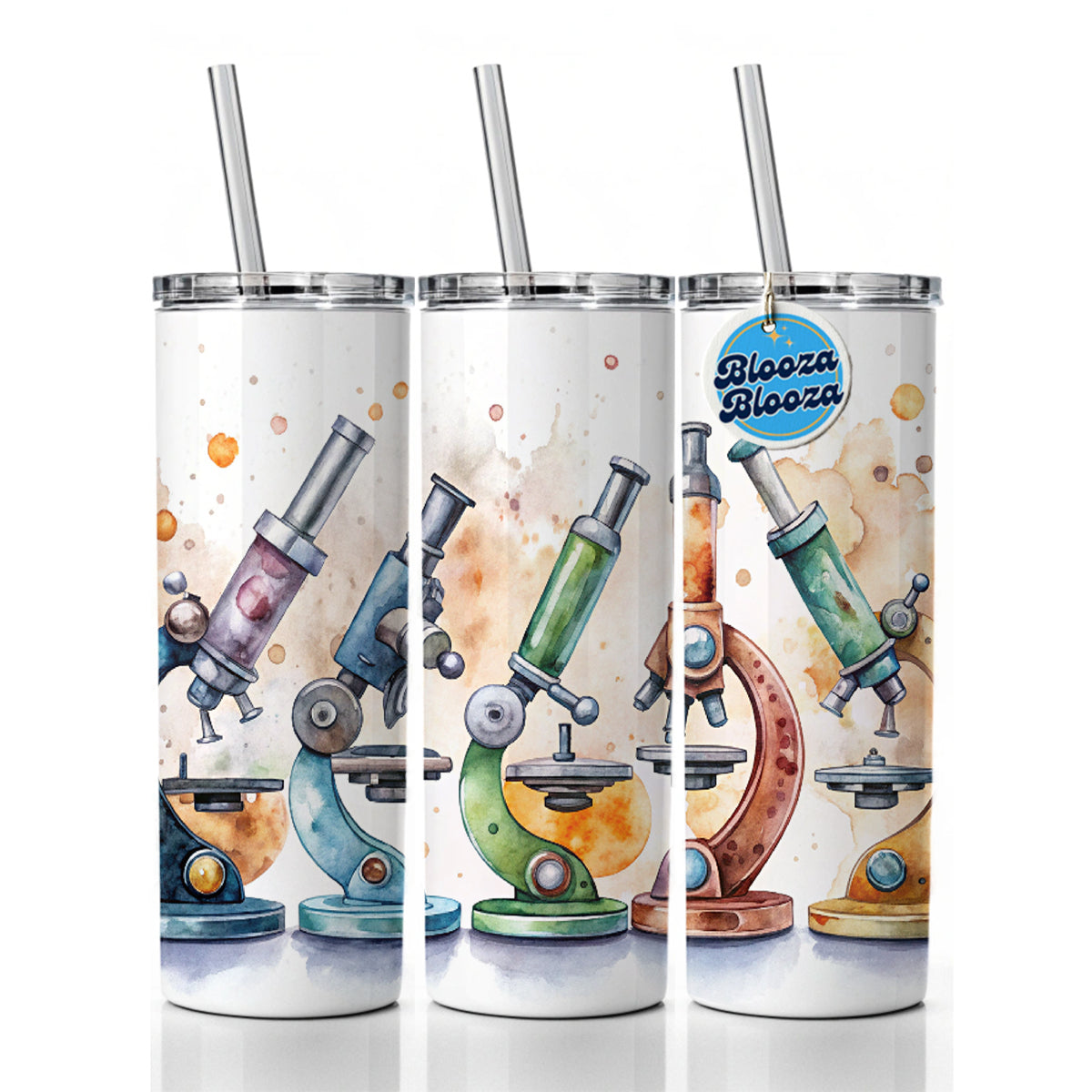 Microscopes Science Scientist Lab Biology Teacher Skinny Tumbler 20oz with Straw Insulated Water Bottle Gift