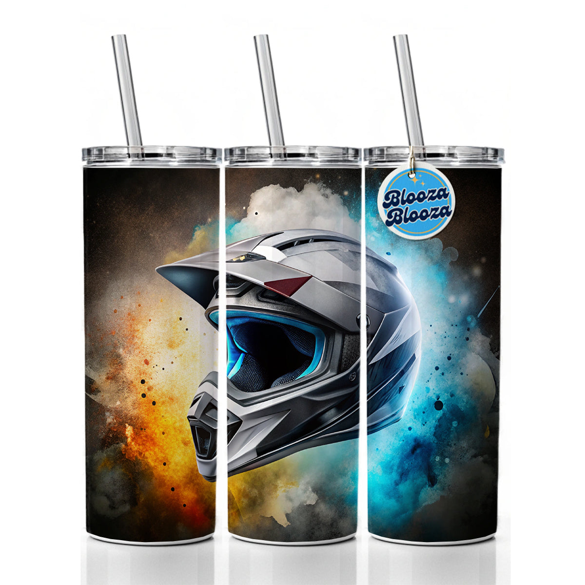 Motocross Racing Bike Helmet Black Watercolor Skinny Tumbler 20oz with Straw Insulated Water Bottle Gift