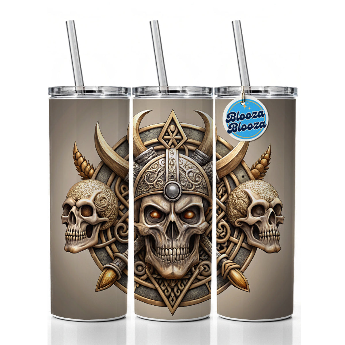 Norse Viking Symbols With Skulls Skinny Tumbler 20oz with Straw Insulated Water Bottle Gift