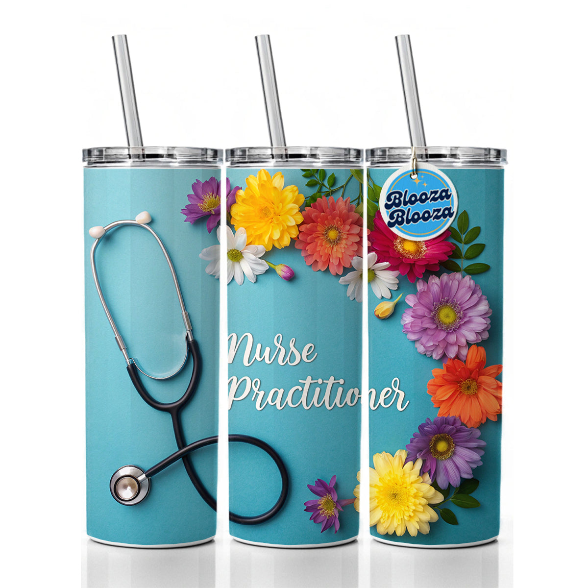 Nurse Practitioner Appreciation Stethoscope Flowers Skinny Tumbler 20oz with Straw Insulated Water Bottle Gift