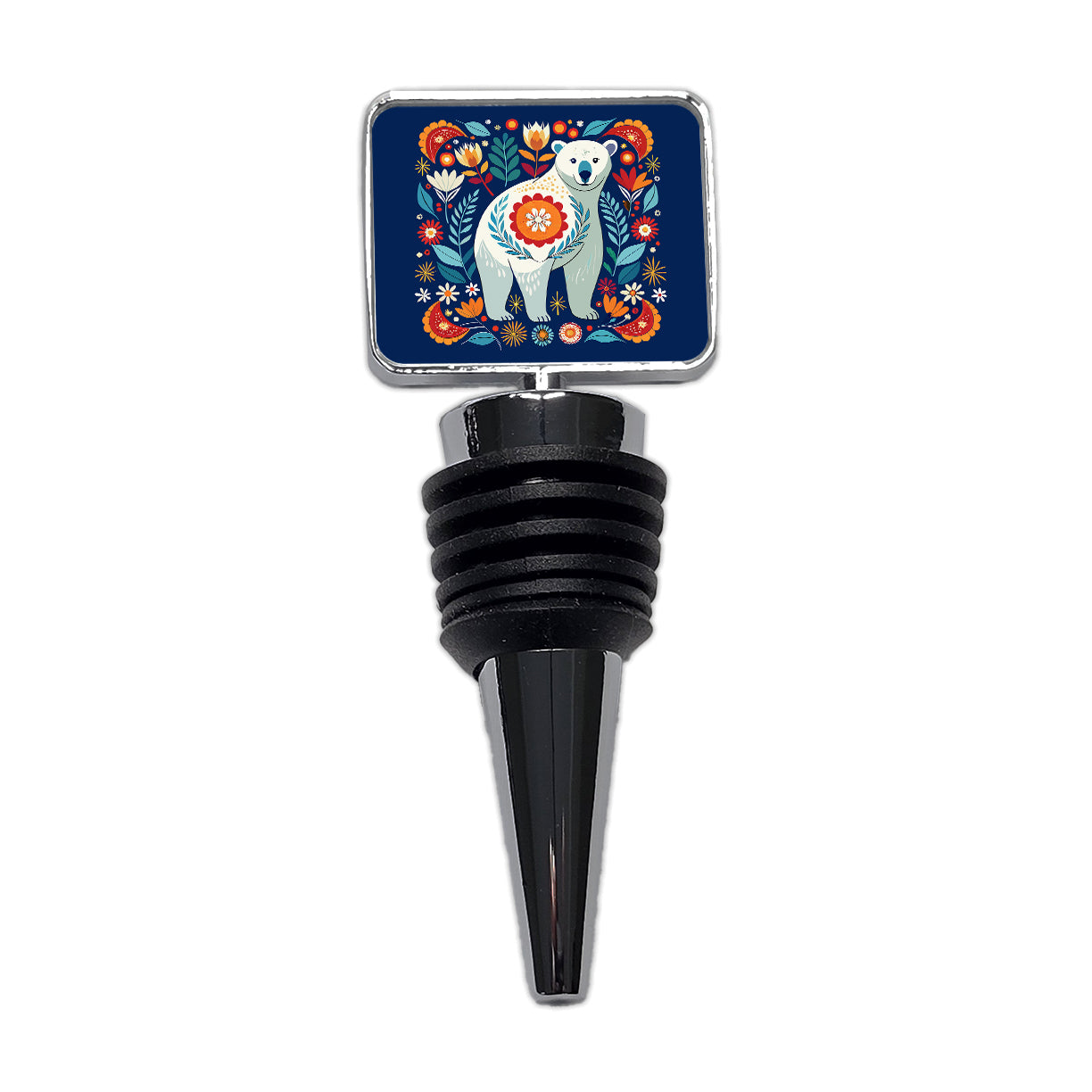 Polar Bear Floral Motif Wine Bottle Stopper