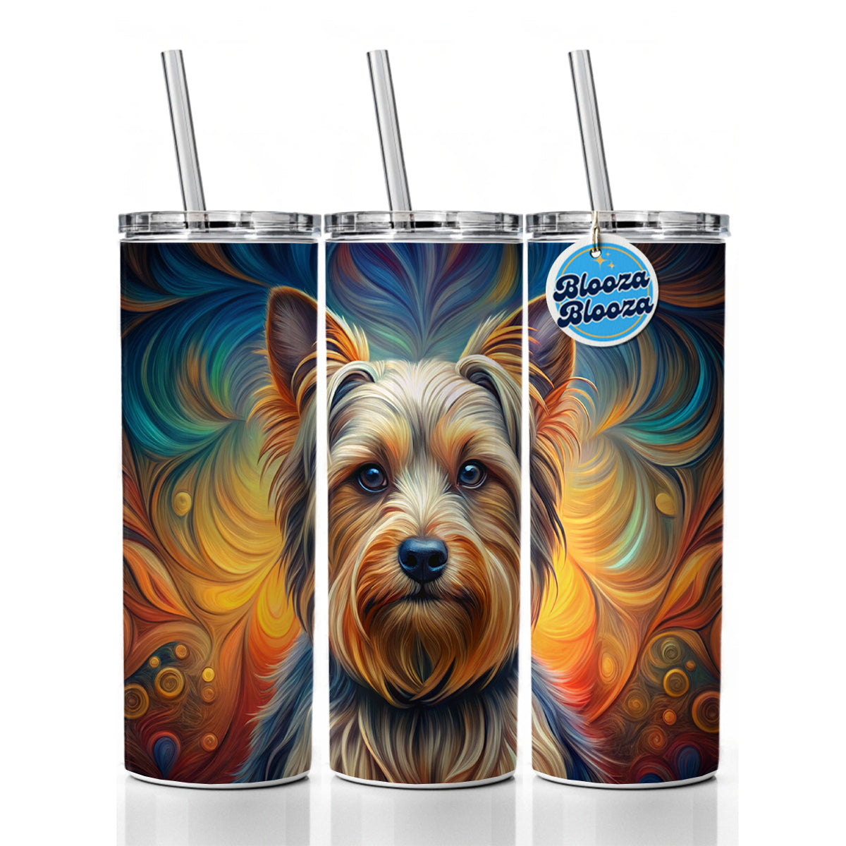 Silky Terrier Dog Art Nouveau Skinny Tumbler 20oz with Straw Insulated Water Bottle Gift