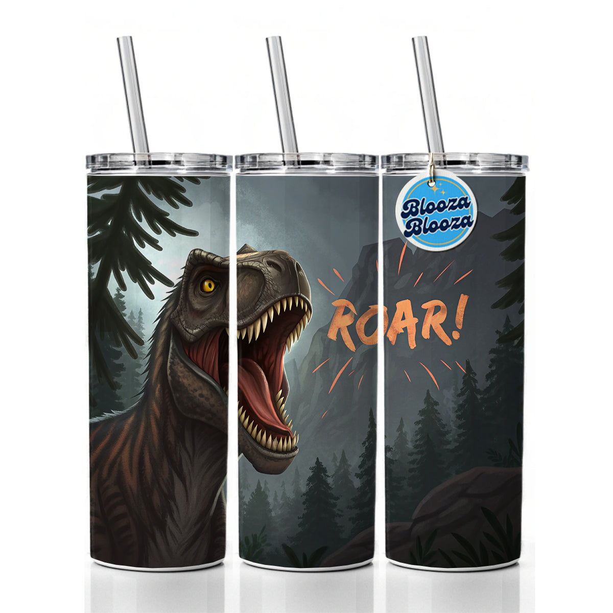 Tyrannosaurus T-Rex Dinosaur Roar Bold Text Skinny Tumbler 20oz with Straw Insulated Water Bottle Gift