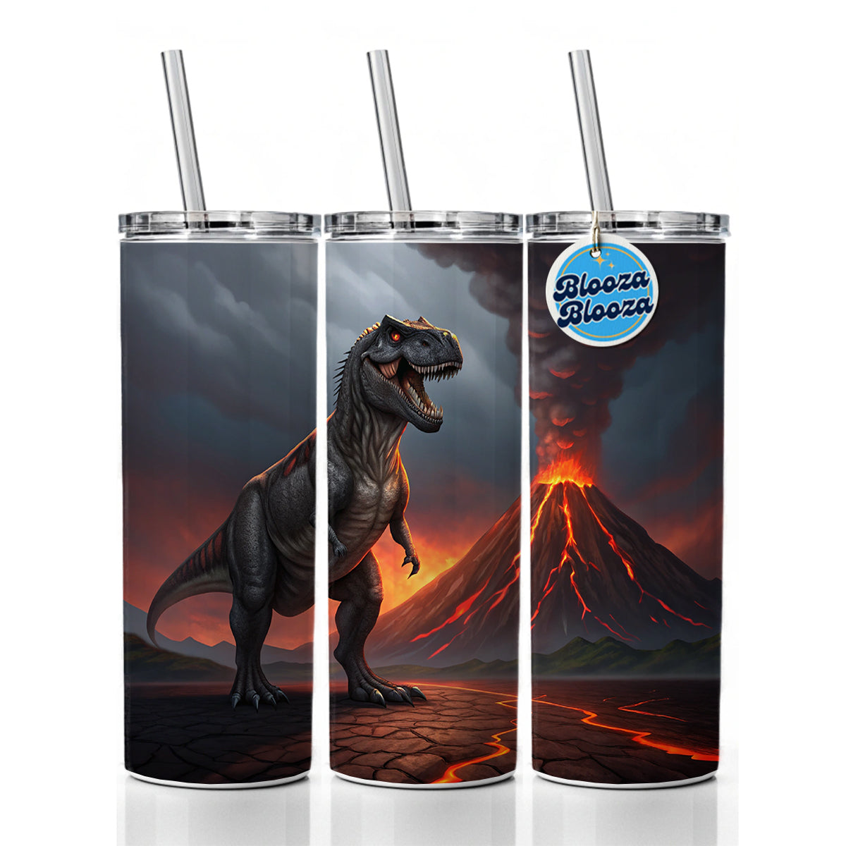 Tyrannosaurus T-Rex Dinosaur Volcano Erupting Skinny Tumbler 20oz with Straw Insulated Water Bottle Gift