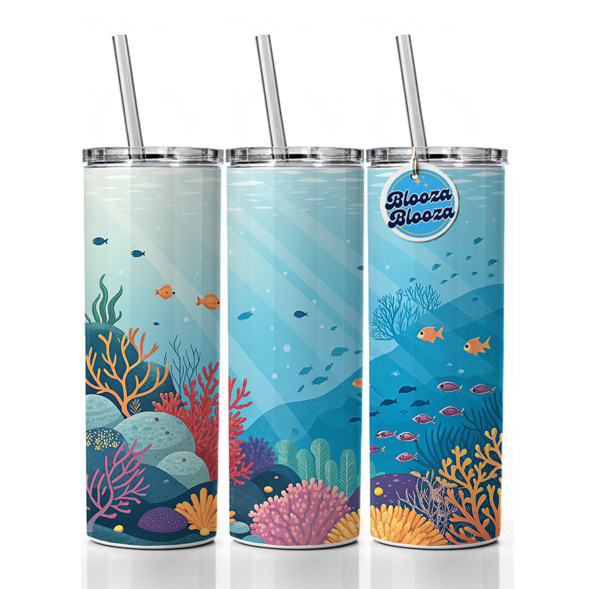Underwater Reef Scene Fish Coral Ocean Tropical Skinny Tumbler 20oz with Straw Insulated Water Bottle Gift