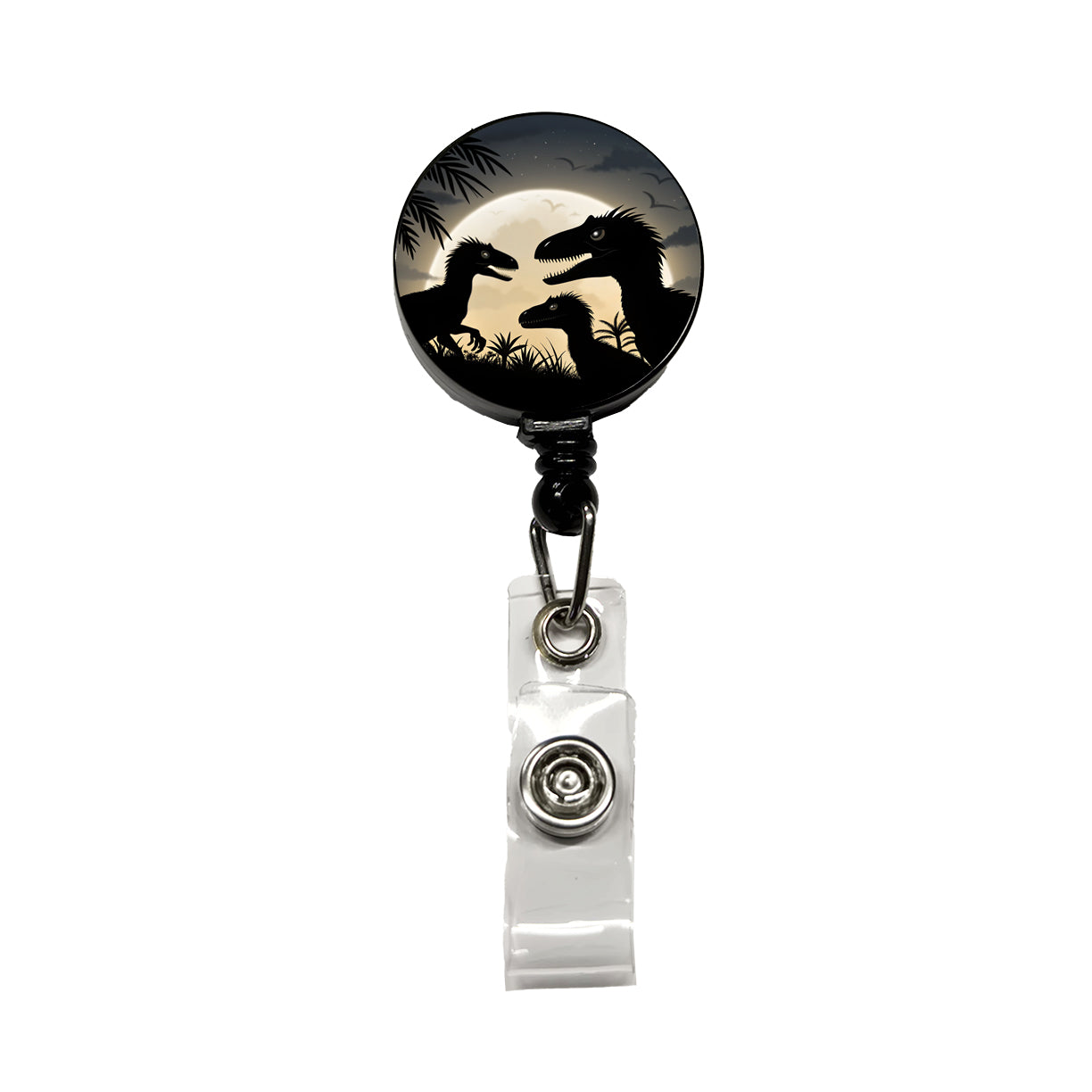 Velociraptor Silhouettes Night Dinosaur Retractable ID Key Card Name Tag Badge Holder with Clip