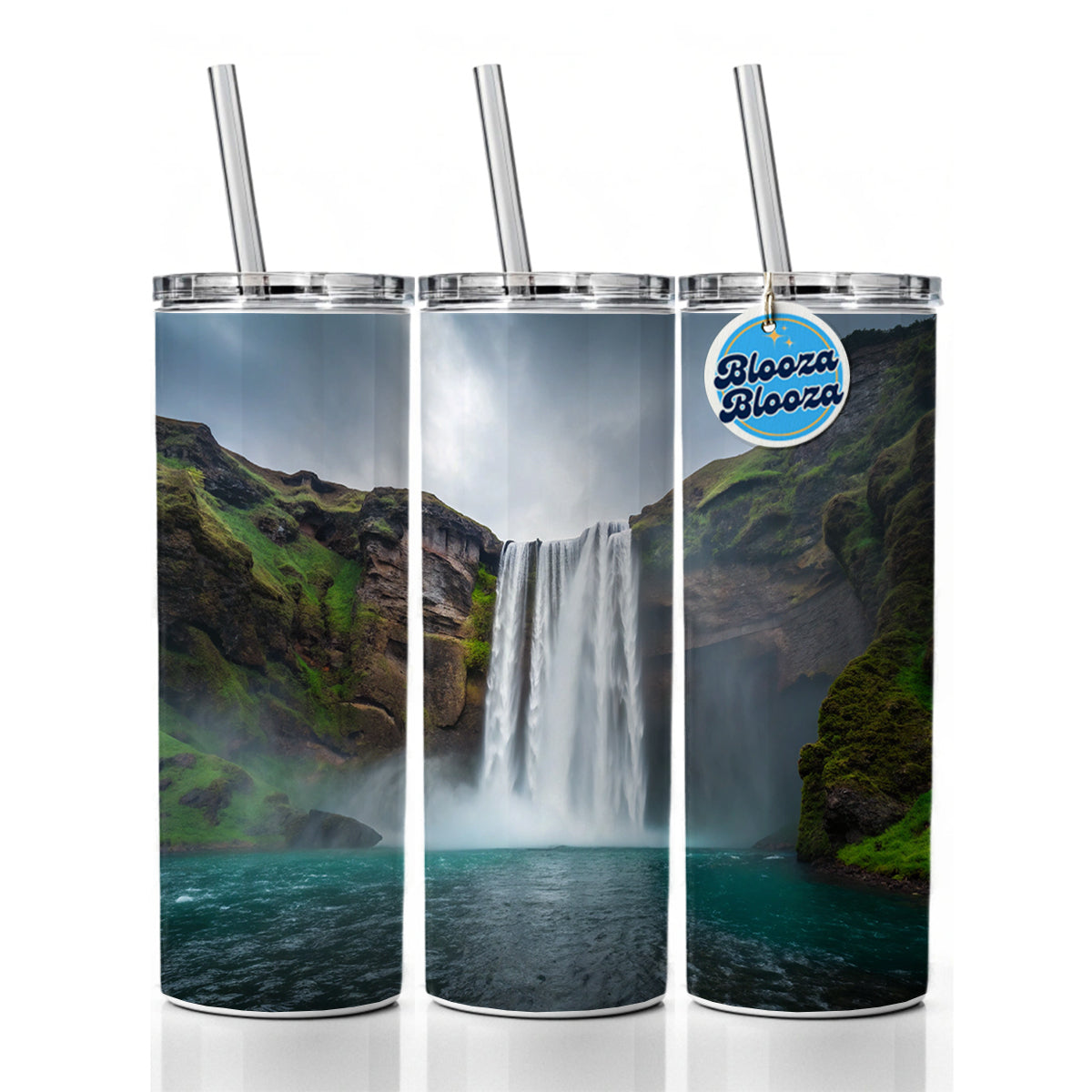 Waterfall Beautiful Skinny Tumbler 20oz with Straw Insulated Water Bottle Gift