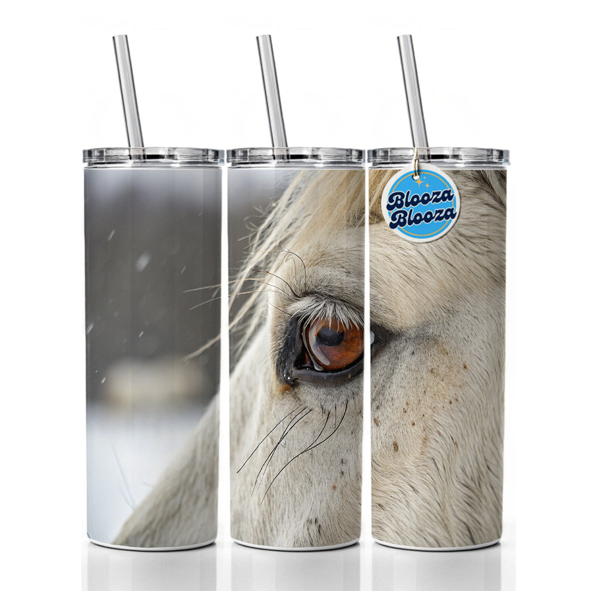 White Horse Eye Close Up Skinny Tumbler 20oz with Straw Insulated Water Bottle Gift