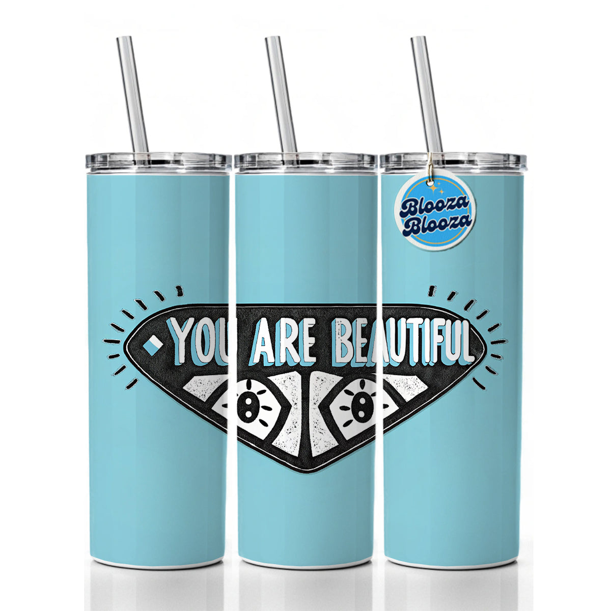 You Are Beautiful Blue Skinny Tumbler 20oz with Straw Insulated Water Bottle Gift